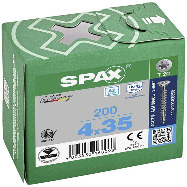 7. SPAX 1197000400353 Wood screw Stainless steel A2 4mm x 35mm 200 pcs 89.94