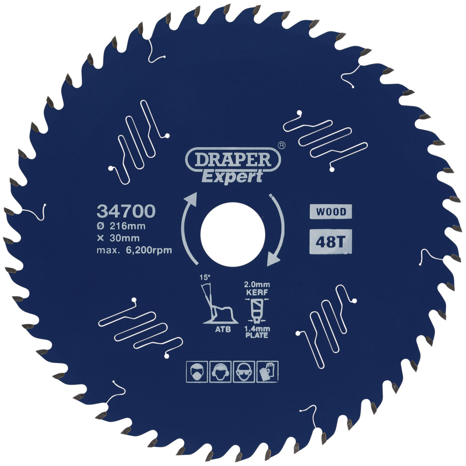 Draper Expert 34700 TCT C/Saw Blade-Wood-PTFE Coating 216x30mm 48T