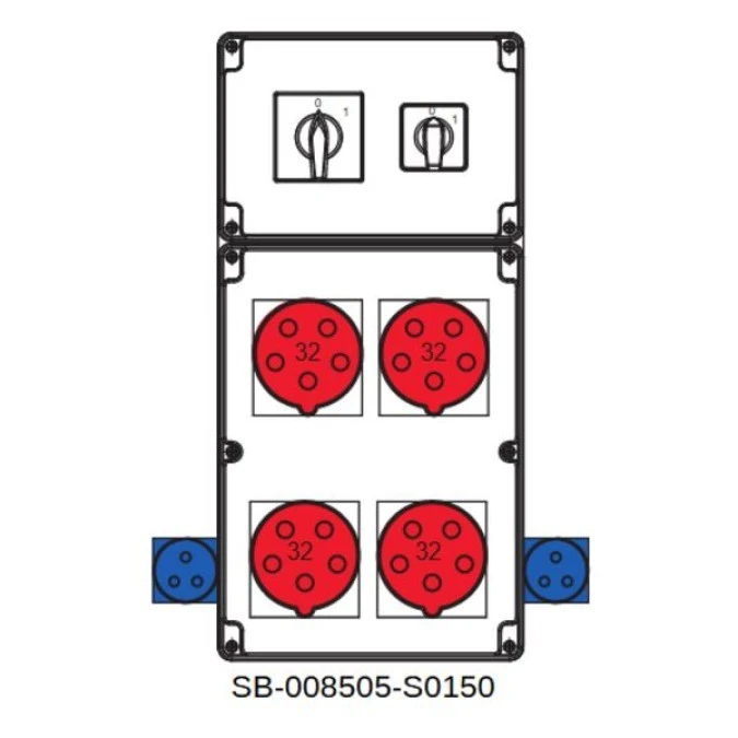 Rozdzielnica 0-1(32A) 0-1(16A) 4x5x32A 2x3x16A INA=32A IP54 SB-008505-S0150-54