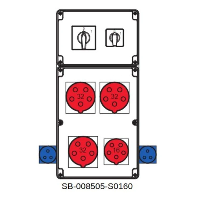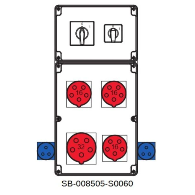 Rozdzielnica 0-1(32A) 0-1(16A) 2x5x32A 2x5x16A 2x3x16A INA=32A SB-008505-S0050-54