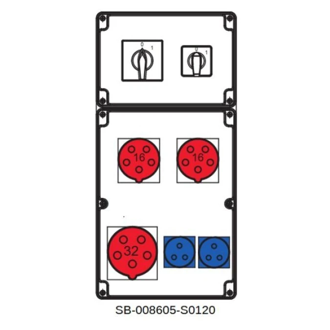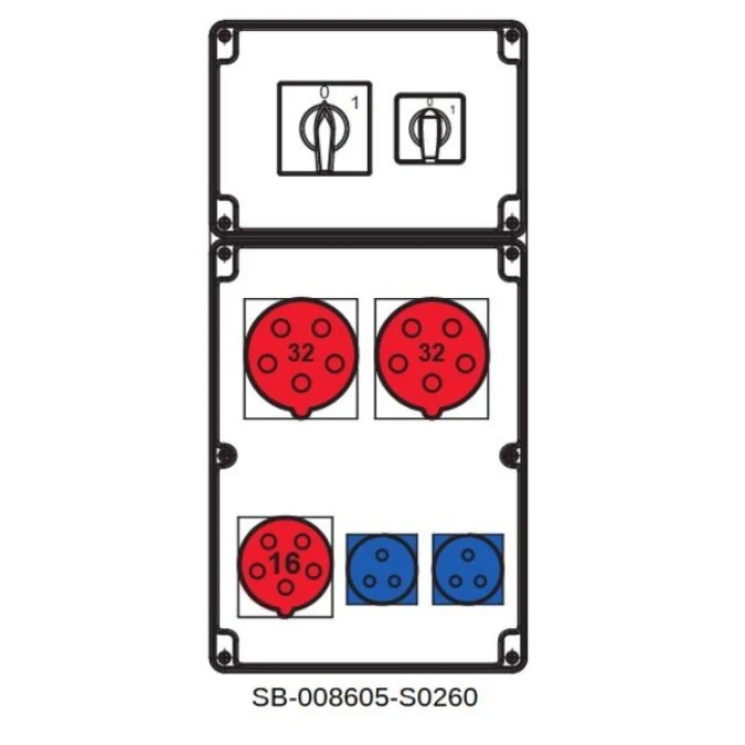 Rozdzielnica 0-1(32A) 0-1(16A) 2x5x32A 1x5x16A 2x3x16A INA=32A SB-008605-S0260-54