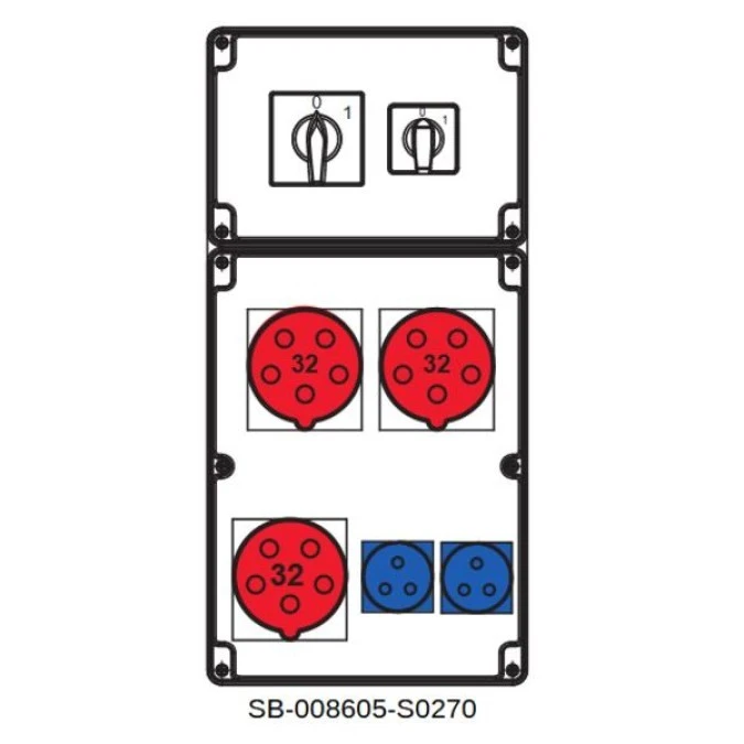 Rozdzielnica 0-1(32A) 0-1(16A) 3x5x32A 2x3x16A INA=32A IP54 SB-008605-S0270-54