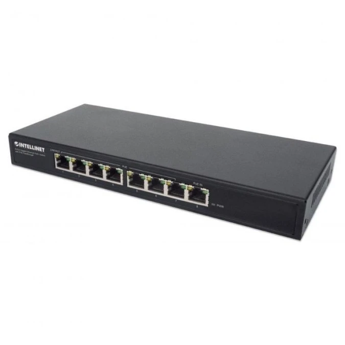 Switch Gigabit 8xPoE+ Passthrough zasilany PoE lub AC, VLAN