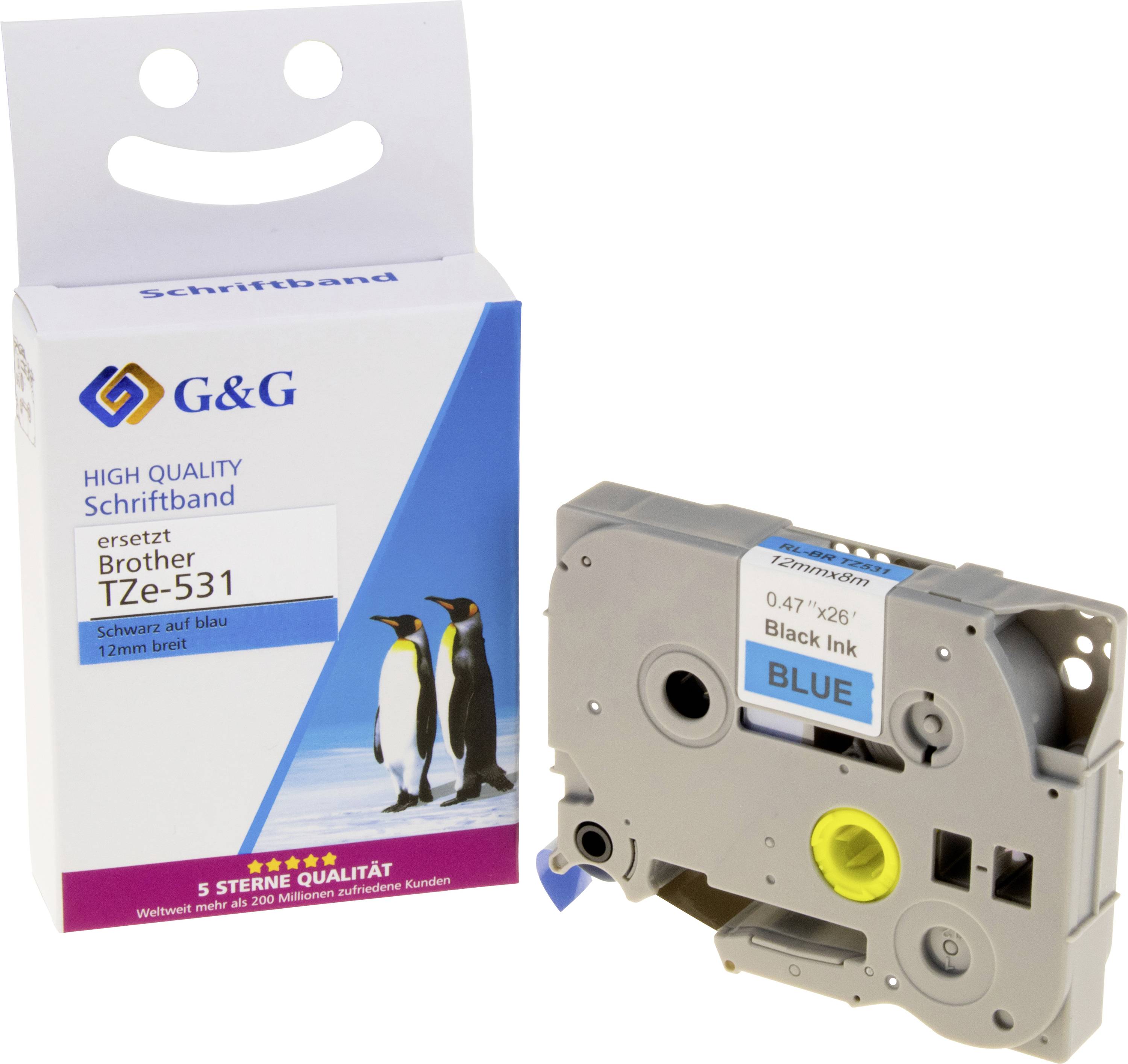 Taśma do nadruku G&G BB-B-G-531, 12 mm x 8 m, Kolor taśmy: niebieski / Kolor nadruku: czarny