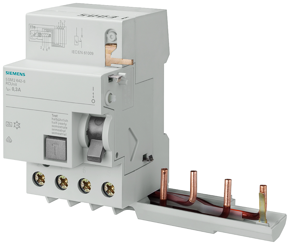 Wyłącznik różnicowoprądowy z członem nadprądowym RCBO, Typ AC, 4-biegunowy, 40A, 230V, 300mA, na szynę DIN, Siemens,