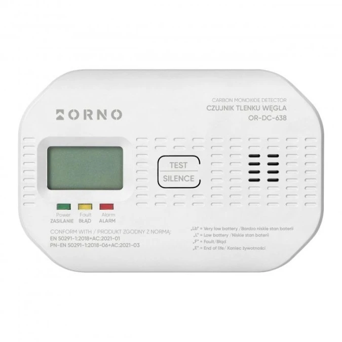 Bateryjny czujnik tlenku węgla (czadu), 2xAA, żywotność sensora 10 lat,OR-DC-638
