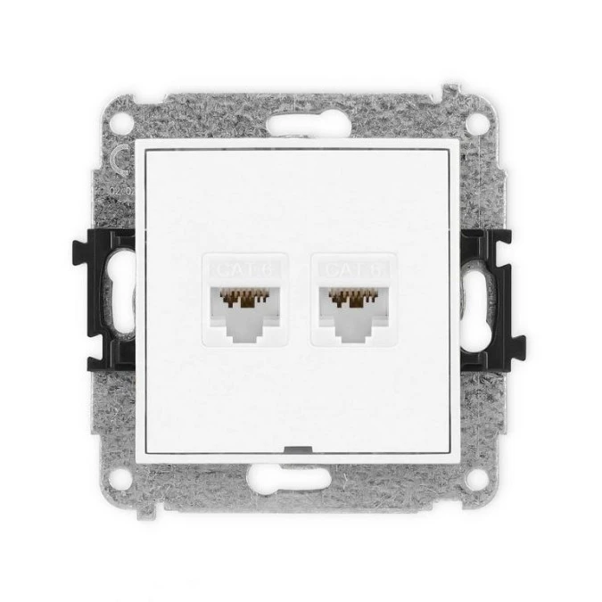 6. DECO Mechanizm gniazda komputerowego podwójnego 2xRJ45, kat. 6A, 8-stykowy biały mat 25DGK-8 KARLIK 114.32