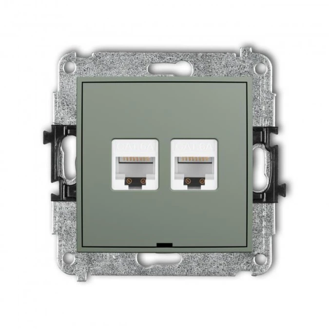 MINI Mechanizm gniazda komputerowego podwójnego 2xRJ45, kat. 6A, 8-stykowy, bez pola opisowego szałwiowy 61MGKBO-8