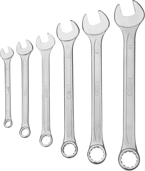 7. Klucze płasko-oczkowe 6-19mm zestaw 8 sztuk + etui z wymiarami 09-751 NEO TOOLS 62.39