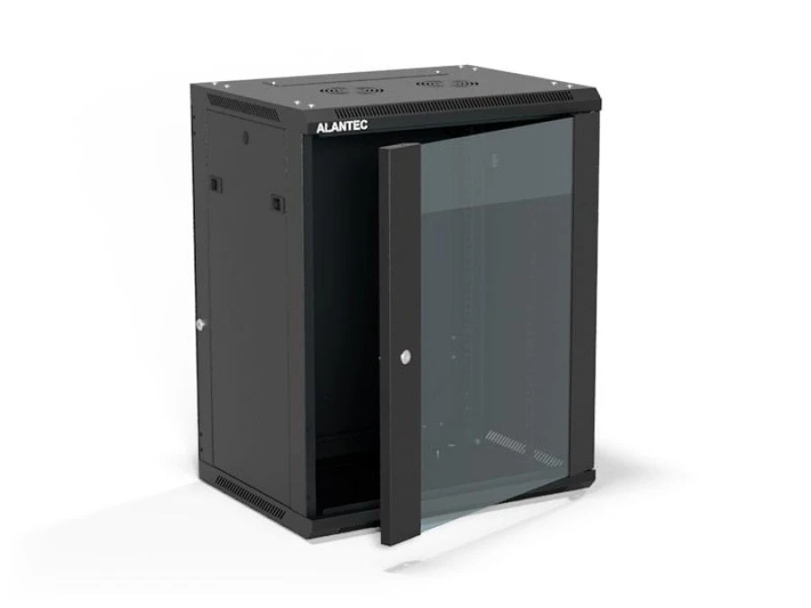 3. Szafa rack wisząca 19 cali 15U 600x450, drzwi szklane, tył i osłony boczne demontowalne, ZŁOŻONA kolor czarny ALANTEC 738.41