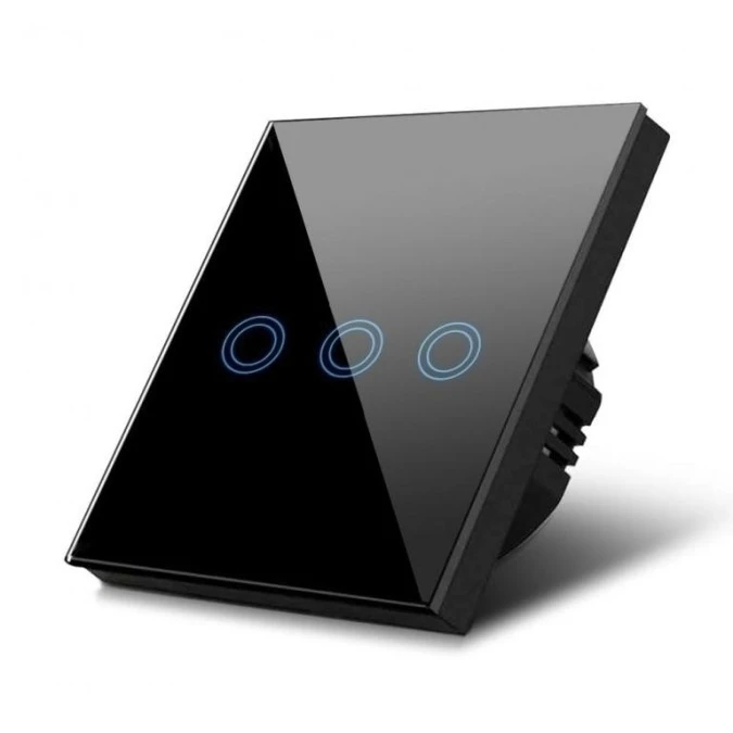 Dotykowy włącznik światła, podtrójny, szklany, czarny z okrągłym przyciskiem MCE705B