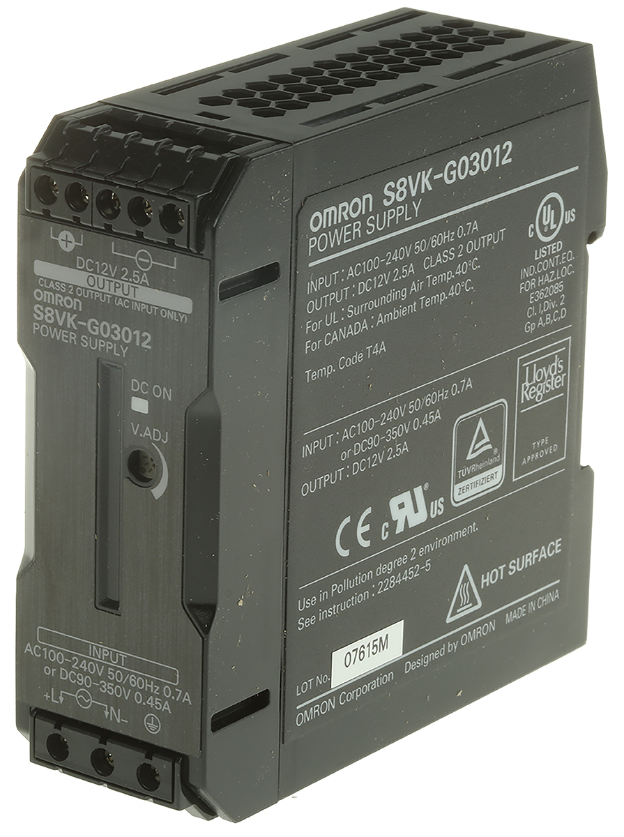 6. Zasilacz szyny DIN U wy 12V dc I wy 2.5A U we 100 → 240 V ac / 90 → 350V dc Omron 30W impulsowy 425.24