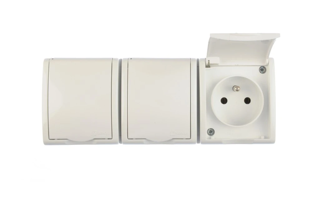 10. Simon Aquarius Gniazdo hermetyczne potrójne z/u IP54 z klapką pełną białe AQGZ1-3/11 55.82