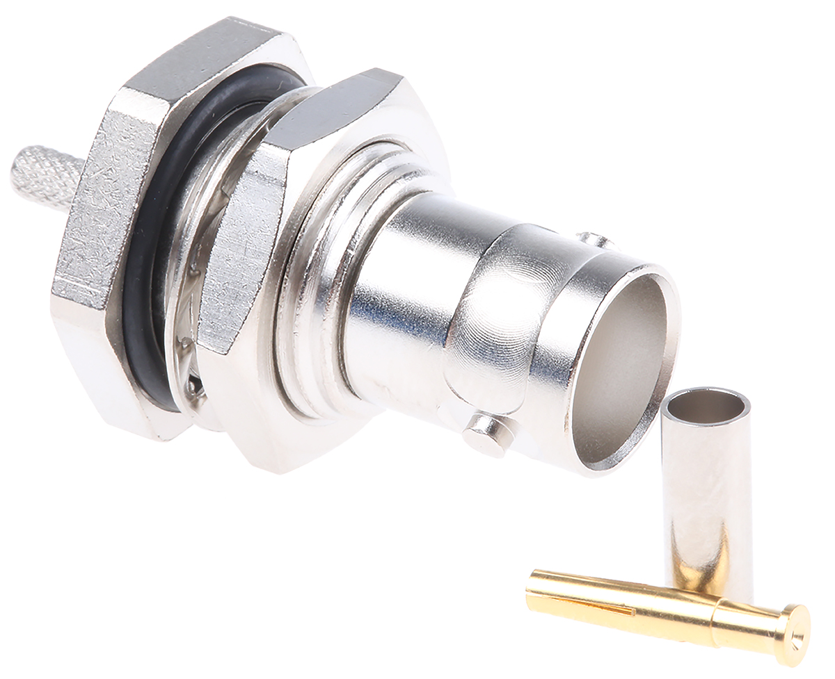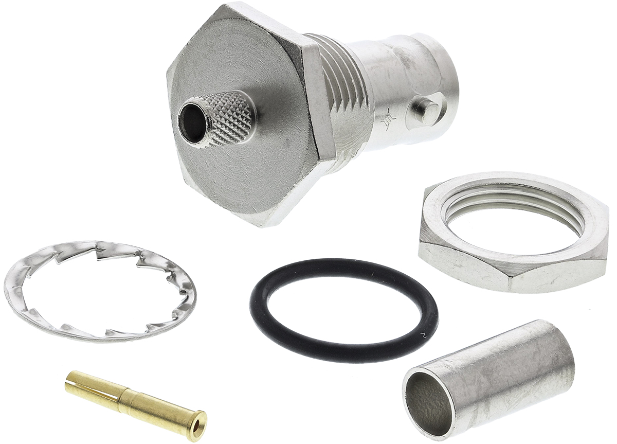 Złącze koncentryczne Montaż na panelu Żeński 50Ω typ złącza Złącze BNC 0 to 4GHz Połączenie zagniatane typ kabla RG58