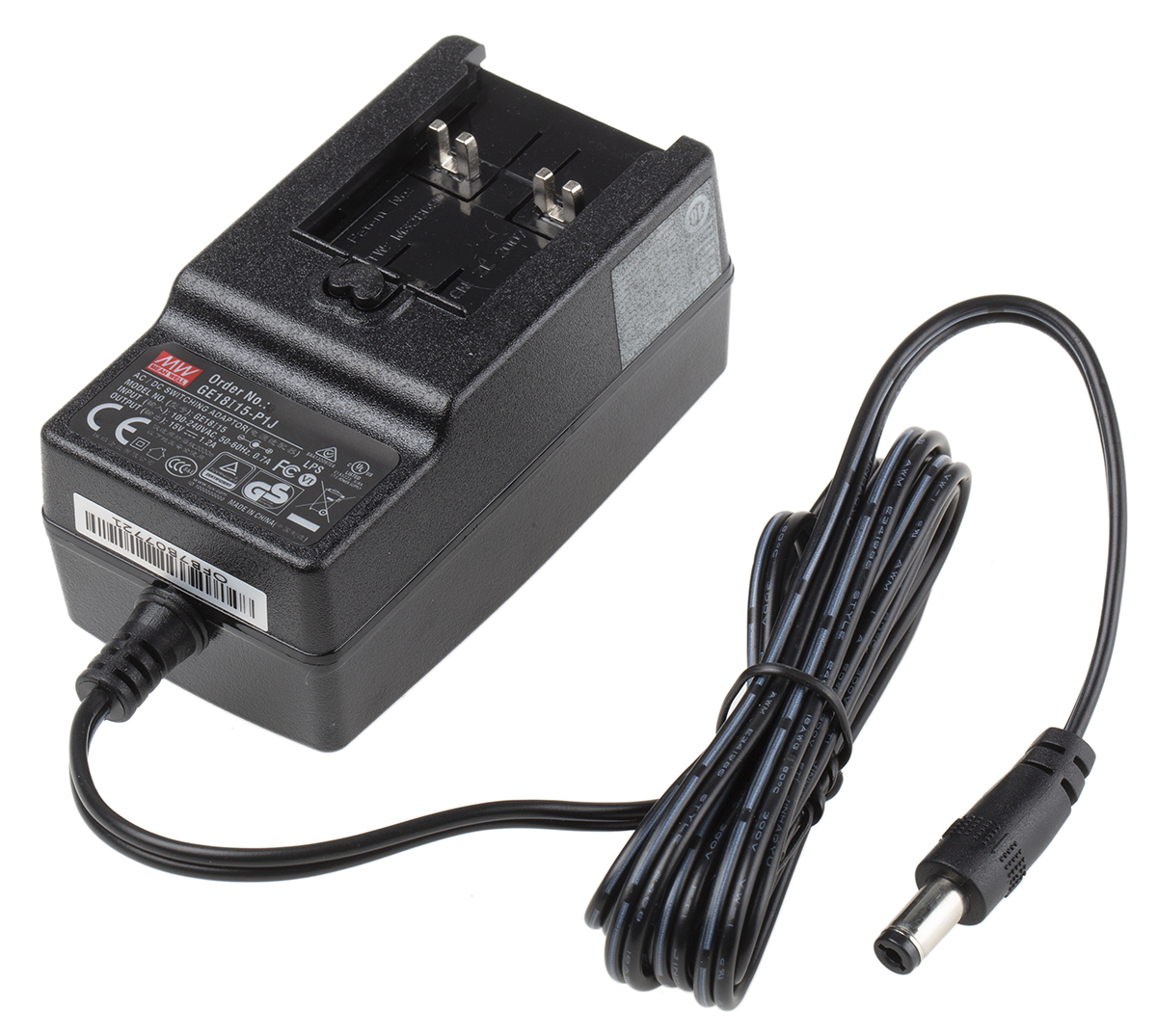 7. Adapter AC/DC Uwy 18V dc Iwy 1A Złącze 2,1 x 5,5 x 11 mm, biegun dodatni w środku 18W, typ wtyczki: Wtyk 123.89