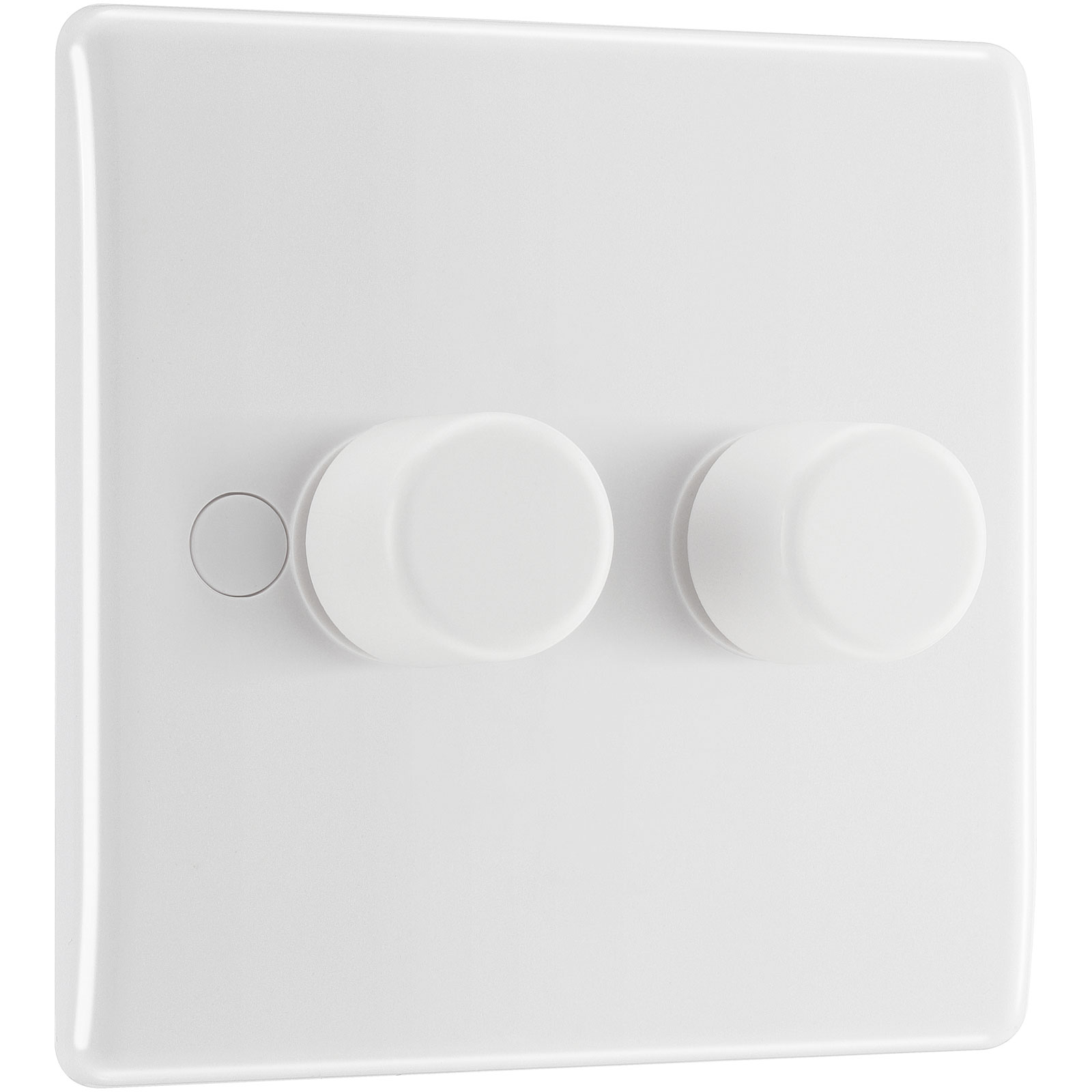 BG 882 White Nexus Moulded 200W Double Dimmer Switch 2-Way Push On/Off