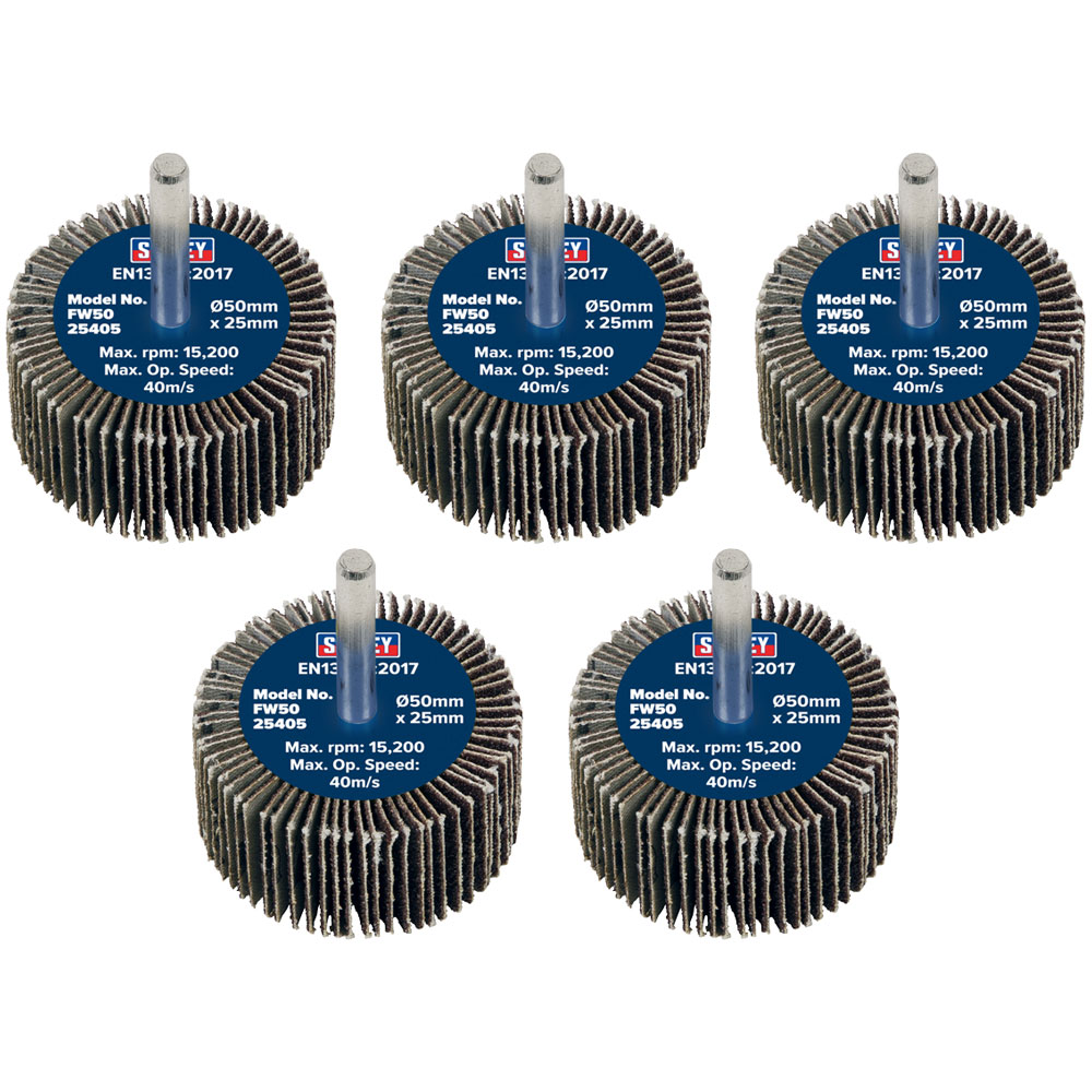 Sealey FW5025405 50 x 25mm Abrasive Flap Wheel on 6mm Shaft 40Grit - Pack of 5