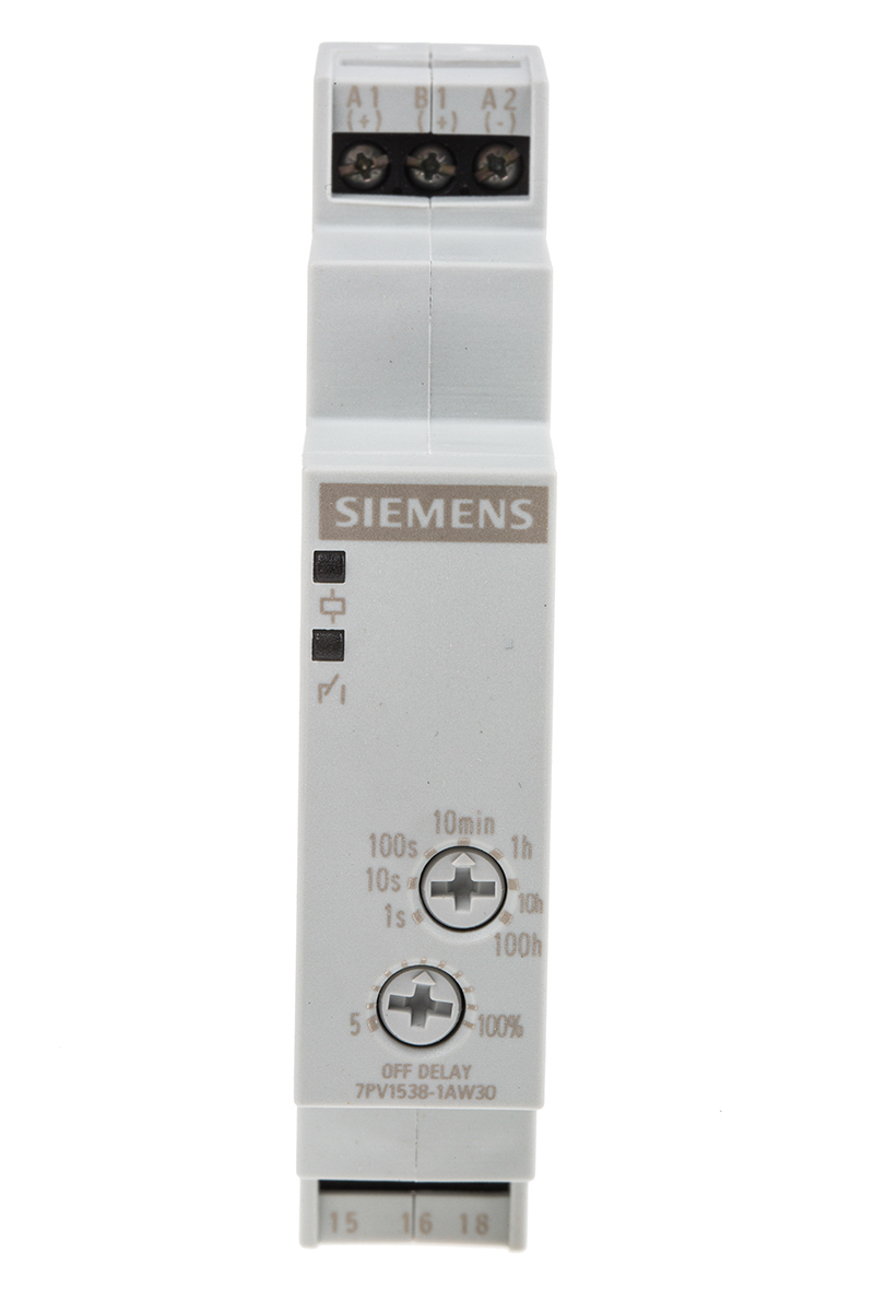 Timer Relay Szyna DIN 12 → 240V ac/dc SPDT 1-stykowy Siemens SPDT 0.05 → 100 s, 3 → 100 min, 5