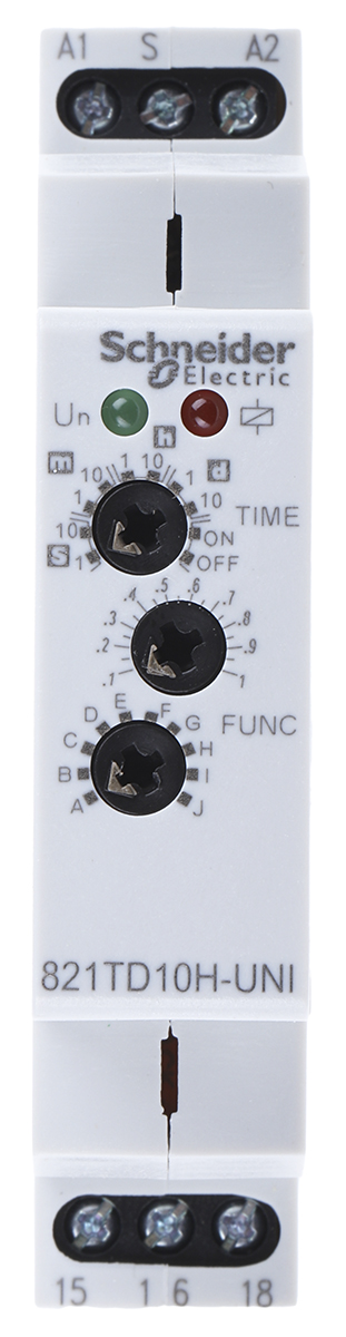 Timer Relay Szyna DIN 12 → 240V ac/dc SPDT 3-stykowy Schneider Electric SPDT 0.1 s → 10dni Wielofunkcyjne