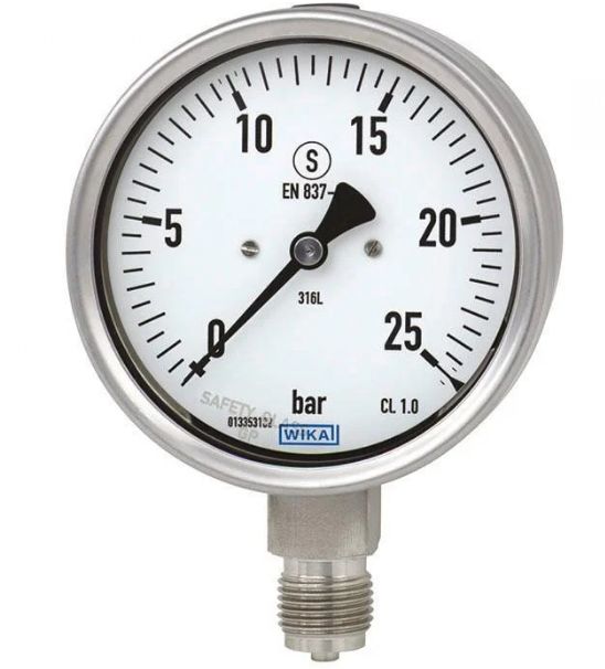 Manometr rurowy WIKA Bourdon z obudową wypełnioną ...