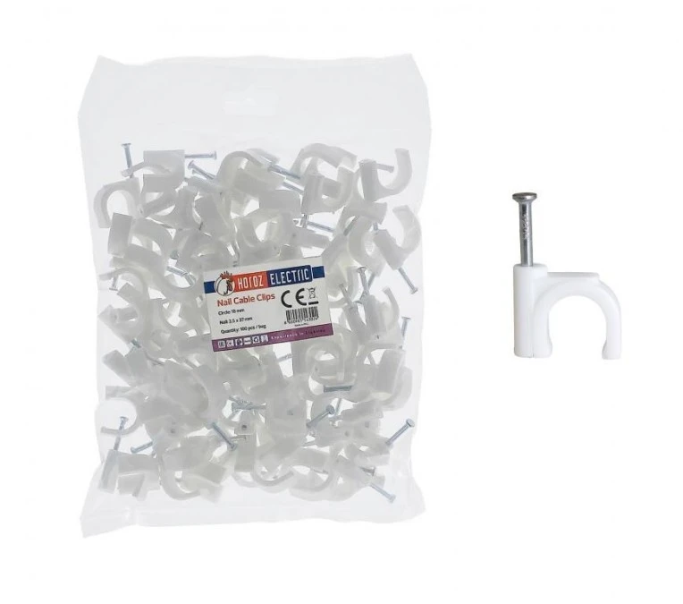 7. Uchwyt kablowy okrągły typu FLOP fi 18mm biały (opk. 100 szt.) HOROZ 11.25