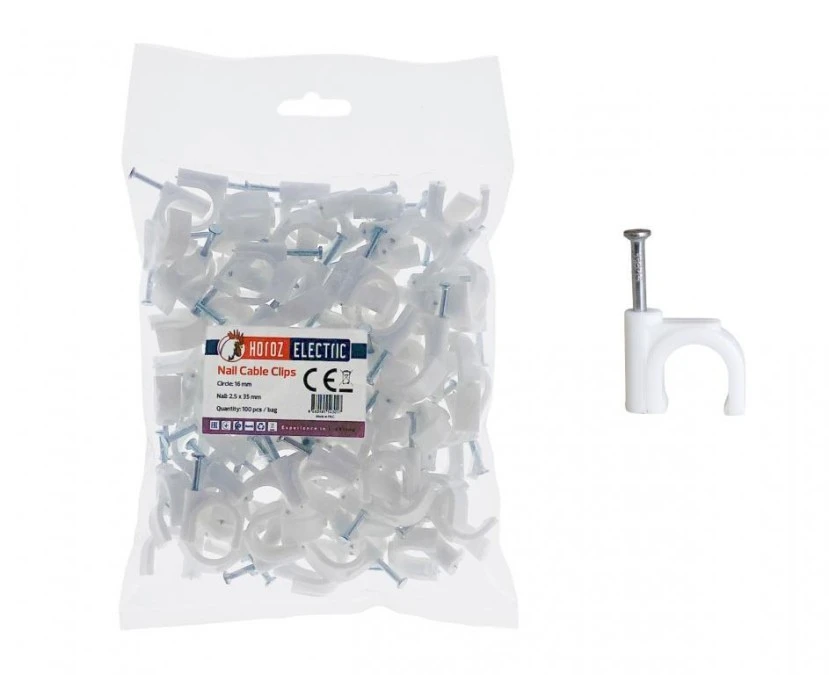 2. Uchwyt kablowy okrągły typu FLOP fi 16mm biały (opk. 100 szt.) HOROZ 10.50