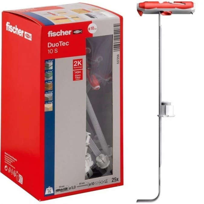 13. Kołki uchylne, zaciskowe uniwersalne do wielu powierzchni DuoTec 10S 10mm z wkrętem FISCHER 25 sztuk 94.83