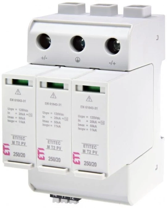 Ogranicznik przepięć PV DC Typ 2 (C) 1100V 3P 20kA 3,8kV ETITEC M T2 PV 1100/20 Y 002440515 ETI