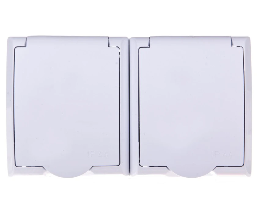 8. FALA Gniazdo hermetyczne podwójne z/u IP44 z przesłonami klapka biała GNH-2HZP/00/w 30.71