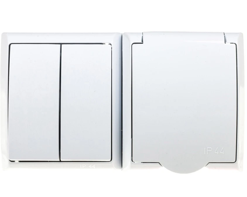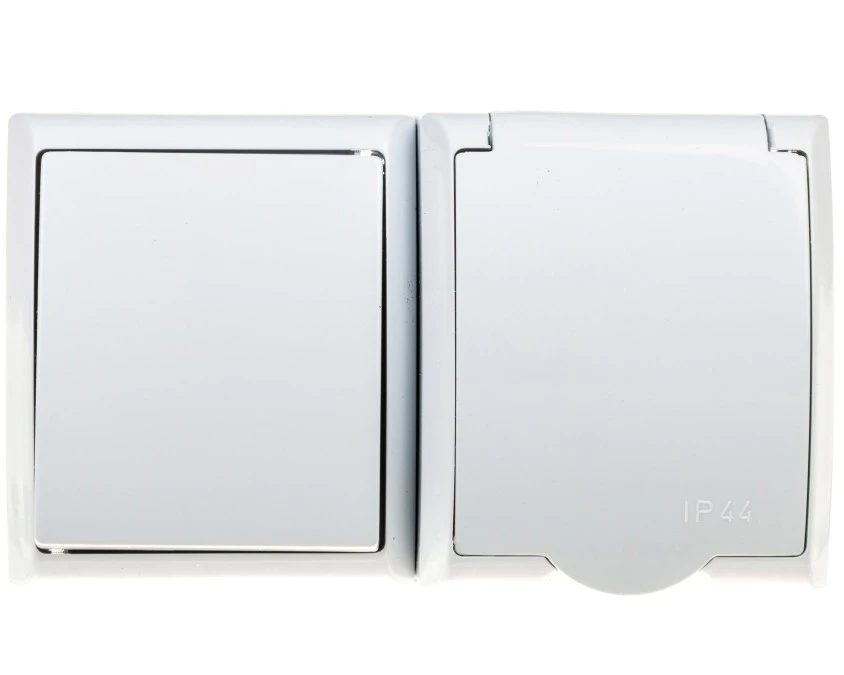 7. FALA Wyłącznik podwójny świecznikowy + gniazdo pojedyncze wieczko przezroczyste biały ZH-Ł2G/00/d OSPEL 30.34