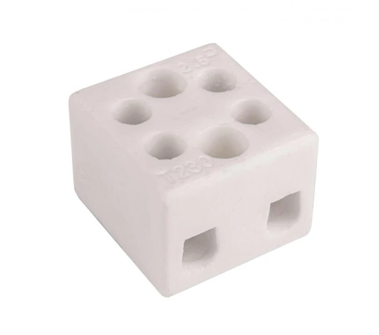 10. Złączka gwintowa porcelanowa szkliwiona (z dwoma otworami do przykręcania) 2,5 mm² 2 tory CPO 2-2.5A 80017516 /16szt./ 5.78