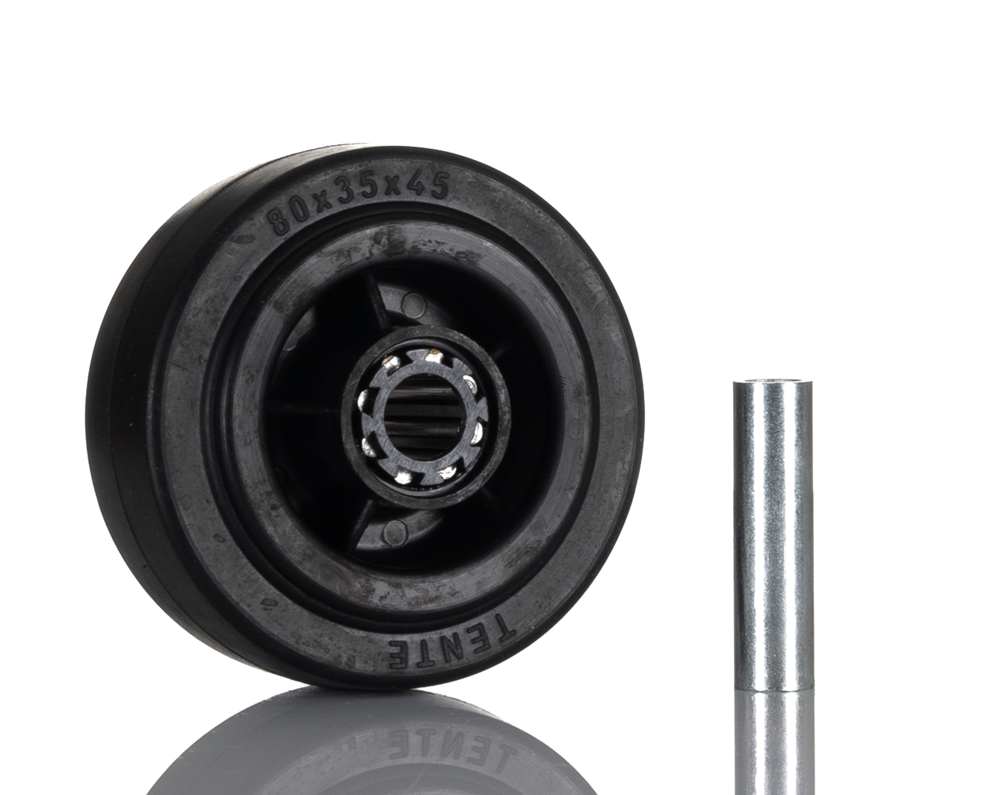 1. Kółko do wózka, Lite, Guma, Czarny, obc.: 70kg, śred.: 80mm, szer.: 35mm 30.61