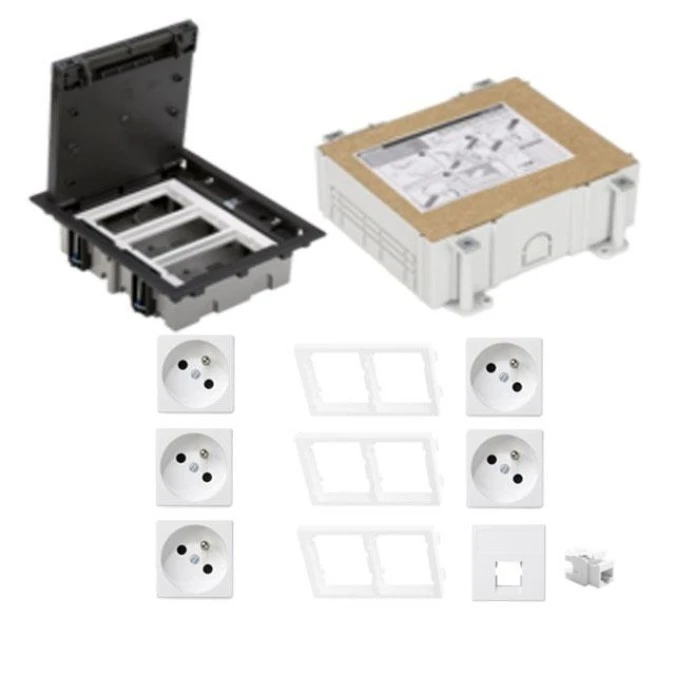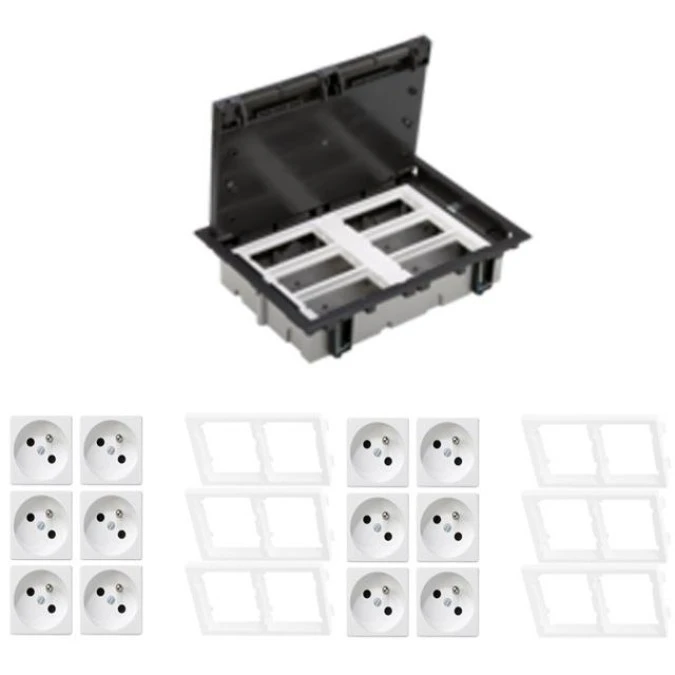 KONTAKT SIMON FLOOR BOX puszka podłogowa 4x gniazdo pojedyncze z/u + 2x gniazdo RJ45 kat.6 nieekranowane + kaseta do wylewki