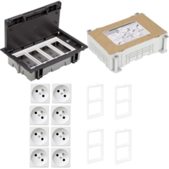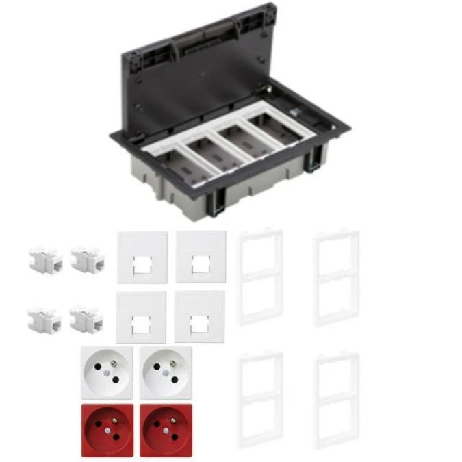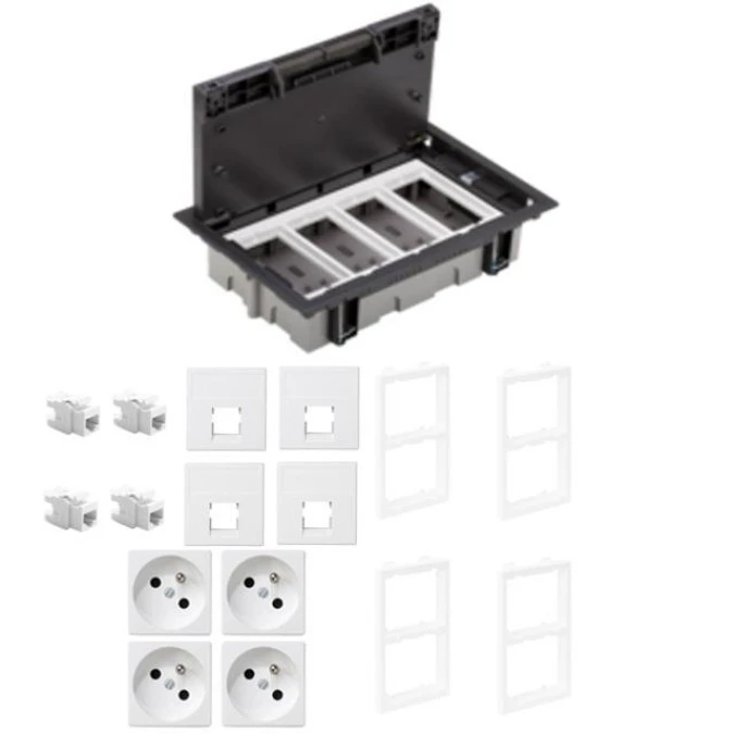 KONTAKT SIMON FLOOR BOX puszka podłogowa 4x gniazdo pojedyncze z/u + 4x gniazdo RJ45 kat. 6 nieekranowane do podłóg technicznych