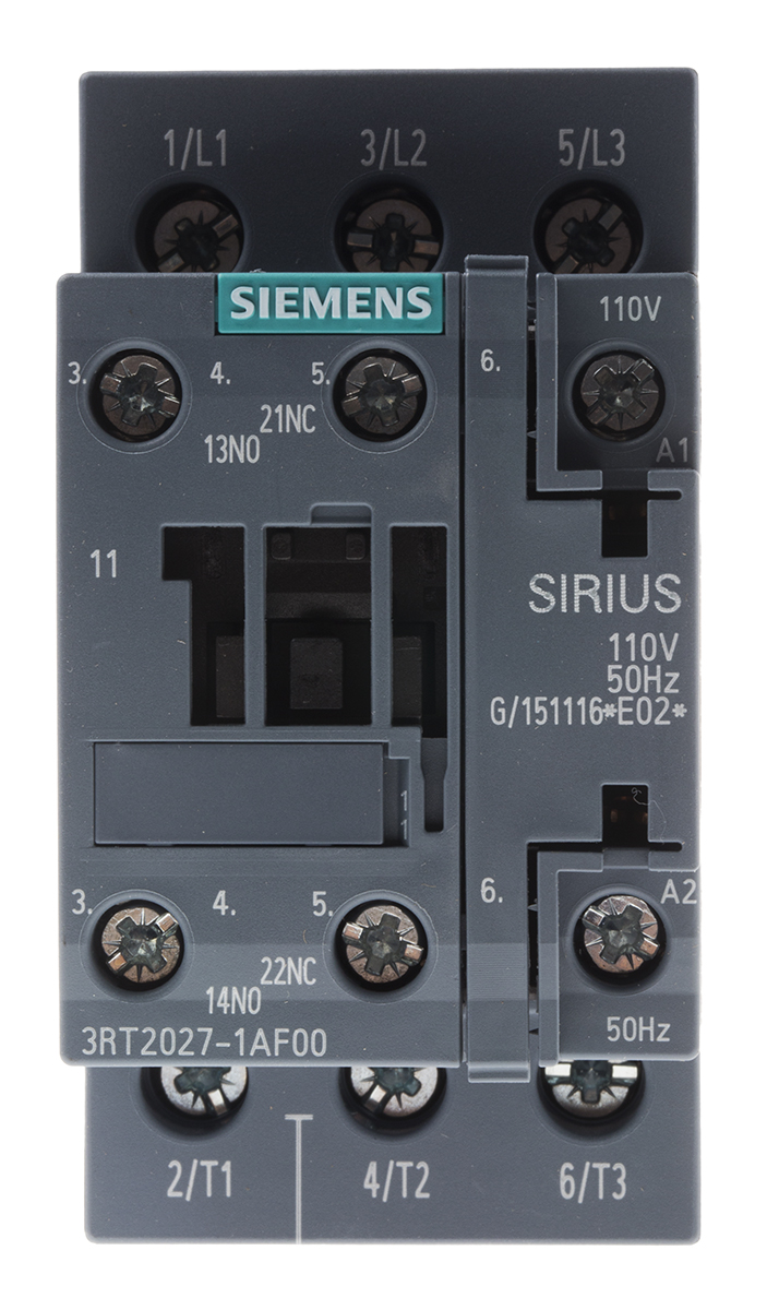 Stycznik 110 V ac Siemens styki: 3 15 kW 32 A 3NO Montaż na szynie DIN Śruba 3RT2027-1AF00