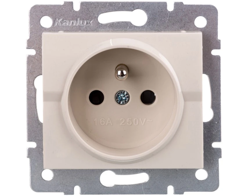 4. LOGI Gniazdo pojedyncze 2P+Z z przesłoną styków śrubowe 16A 250V Kremowy 25149 9.79