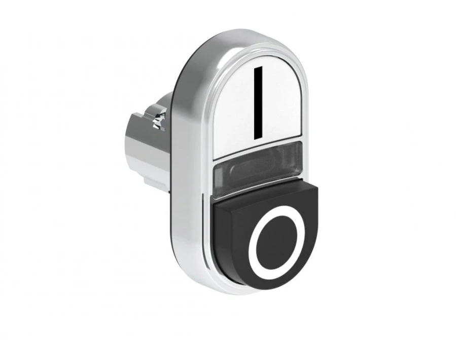 Metalowy przycisk fi22mm 2 klawiszowy samoczynny powrót 1 kryty 1 wystający, podświetlany Biały-Czarny I-0 LPSBL7224