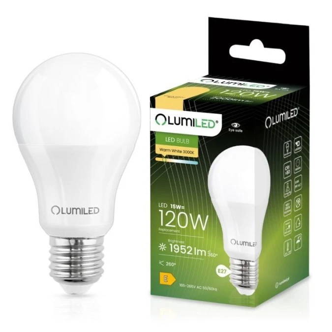 3. Żarówka LED E27 A65 15W = 120W 1952lm 3000K Ciepła 260 LUMILED 5.47