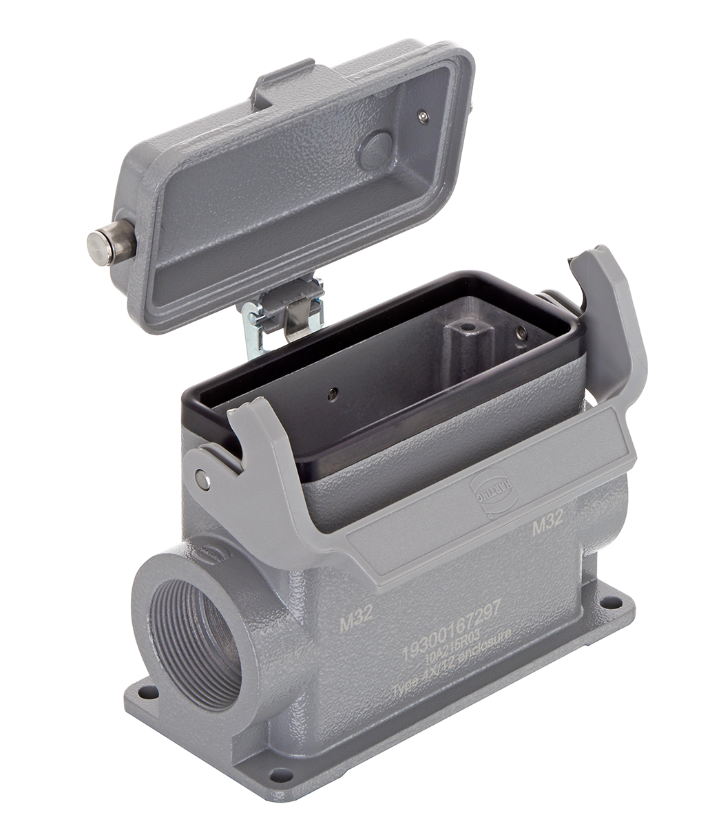 4. Obudowa złączy dużej mocy HARTING Montaż powierzchniowy rozmiar 16B Wpust boczny rozmiar gwintu M32 x 2 619.70