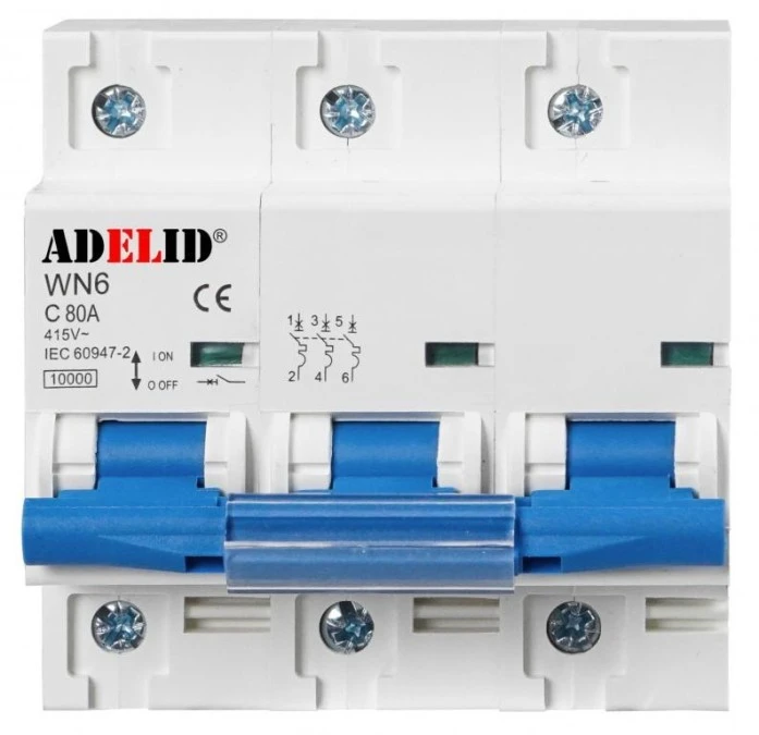 Wyłącznik nadprądowy 3-polowy "C" 80A. Kod ...
