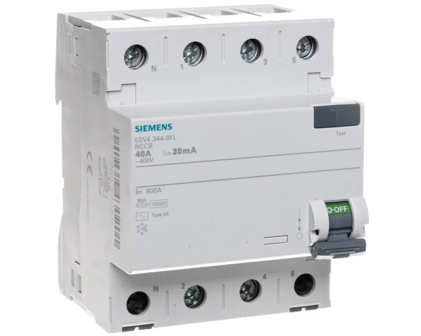 6. Wyłącznik różnicowoprądowy 4P 40A 0,03A Typ AC 30mA 400V SENTRON 5SV4344-0 173.93
