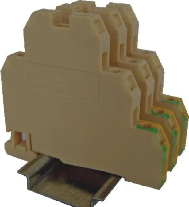 6. Złączka szynowa PE 2-przewodowa 16mm2, listwa zaciskowa żółto-zielonego XTV 16-PE 25.65