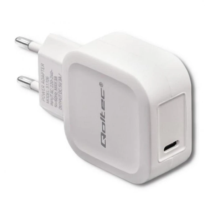 Qoltec Ładowarka sieciowa 20W 5-12V 1.67-3A USB typ C PD Biała