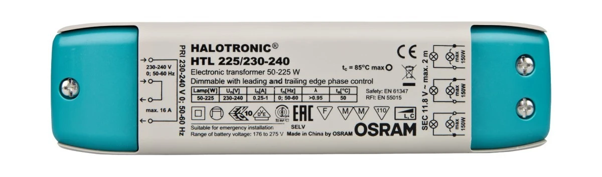 Zasilacz Halogenowy Regulator Fazowy Ściemniacz Fazowy 50-225W 11.6-11.7V OSRAM HTL Compact