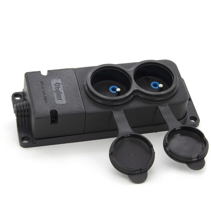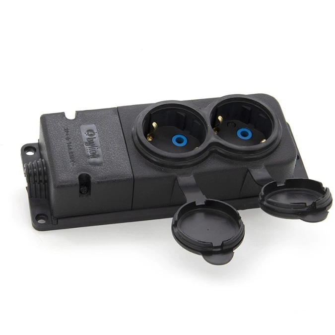 Listwa, gniazdo gumowe (TPE) podwójne IP44 2*16A 2P+Z, kolor czarny, TRG-2