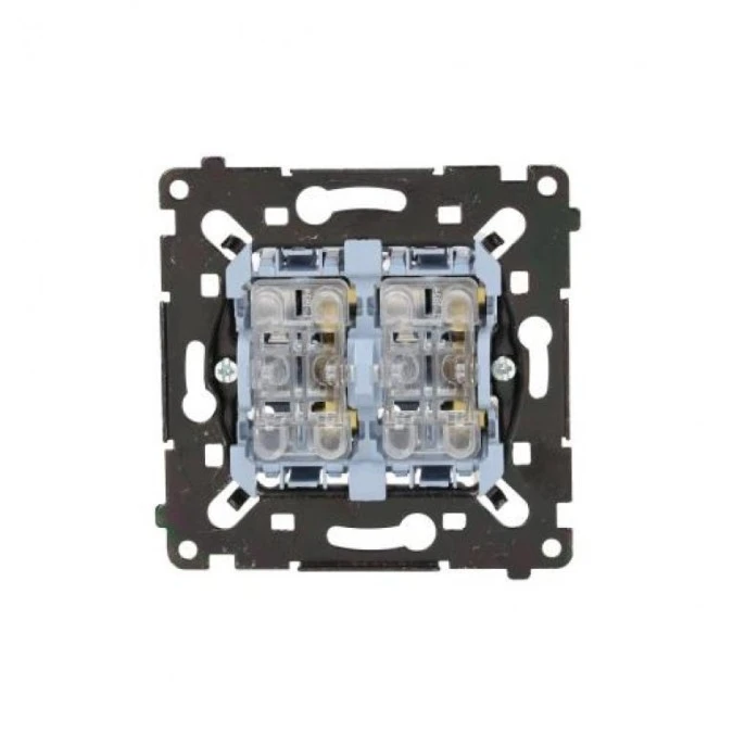 5. Simon 55 Łącznik roletowy podwójny trójpozycyjny 1-0-2 (mechanizm) 10 A, 250 V~, szybkozłącza, czarna rama SZW2MR 53.43