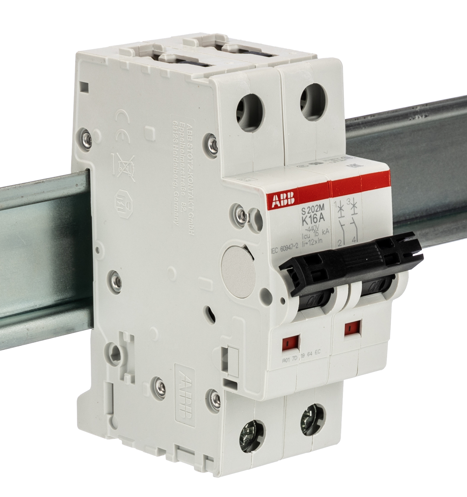 2. Wyłącznik nadprądowy MCB, Typ K, 2-biegunowy, 16A, na szynę DIN, ABB S202M-K16, S200M 397.52