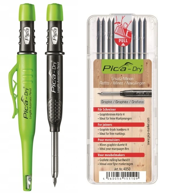 5. Zestaw - ołówek automatyczny znacznik budowlany + zapasowe wkłady 10szt (twardość H, grafitowe) PICA Dry 30405 125.46