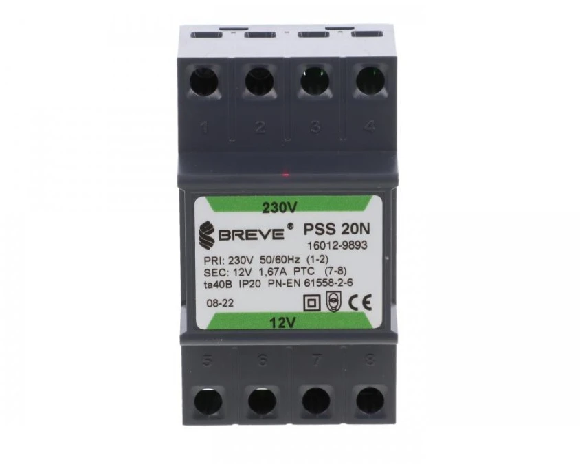 1. Transformator 1-fazowy modułowy bezpieczeństwa PSS 20N 230/ 12V 1,66A, na szynę DIN, IP20, Ta 40, 16012-9893 118.35
