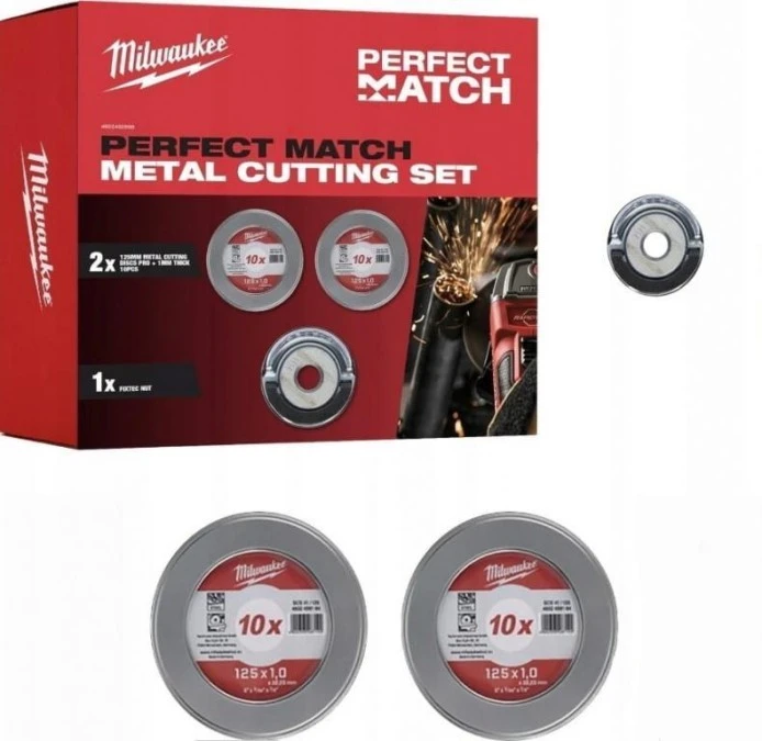 1. Zestaw tarcz PRO+ 125x1,0mm do cięcia metalu 20szt + nakrętka Fixtec MILWAUKEE PERFECT MATCH 217.59